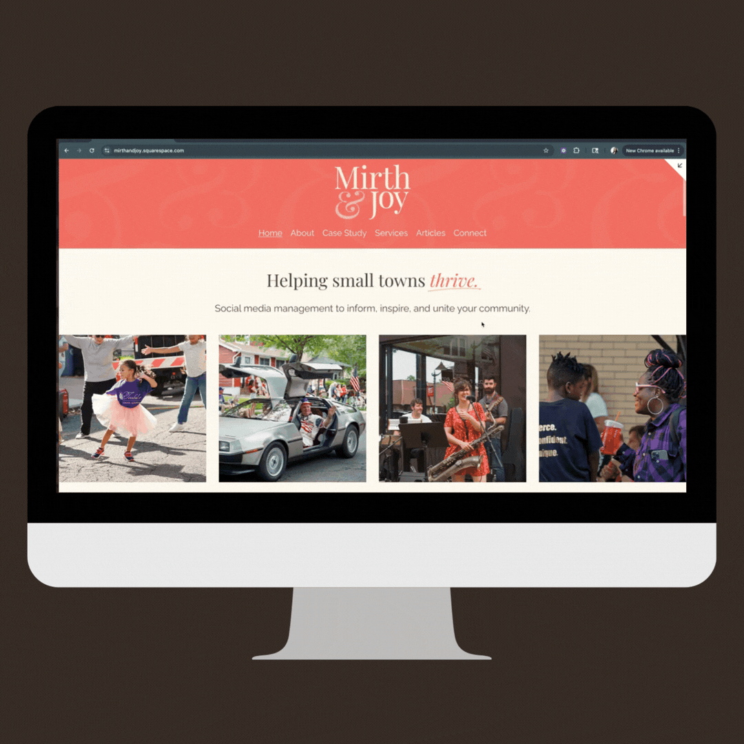 Mirth & Joy is a creative studio dedicated to helping small towns, schools, nonprofits, and local organizations connect with their communities through thoughtful, well-designed social media and storytelling.